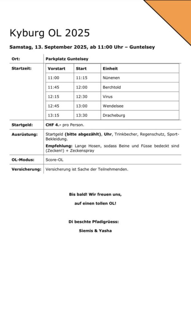 Am Samstag, 13. September 2025 findet unser alljährlicher Kyburg OL statt.